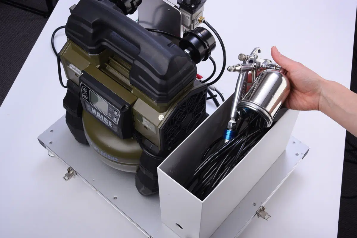 液体カップ、エアチューブ、スプレーガンを取り外して乾かします。