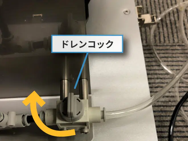 圧力がすべて抜けたらドレンコックを画像の様に「閉」の状態にしてください。