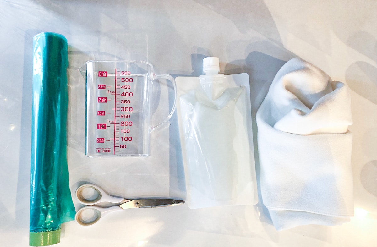 スプレーガンと液体カップを接続し、液体カップに光触媒ALL CLEAR Z(薬液)を入れます。