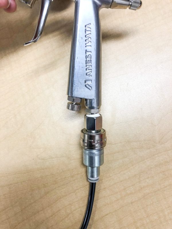 スプレーガンの3つのツマミがすべて締まっていることを確認します。